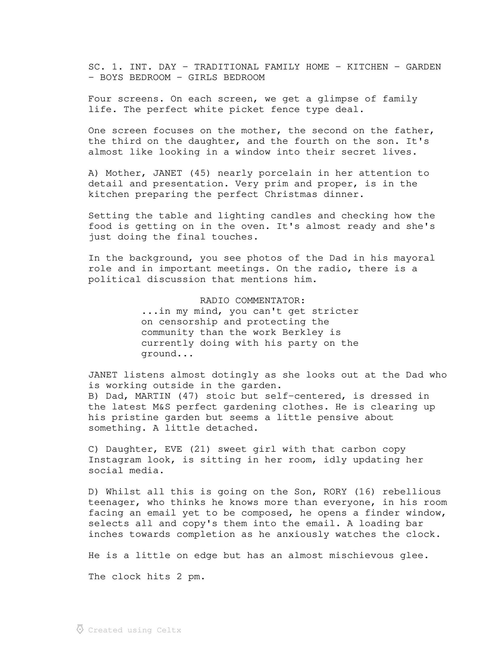 As part of a BFI Intensive Scriptwriting course, I wrote a short film script with three other young emerging creatives.